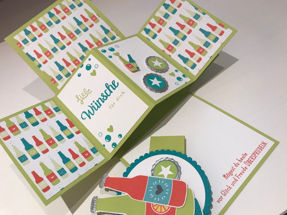 ich schreibe euch den Nachbericht unserer Pop-Up-Panel Karten Workshops mit großer Begeisterung für mein Lieblings- Sale-a-Bration Produkt: Das Designerpapier „Einfach Spritzig“!