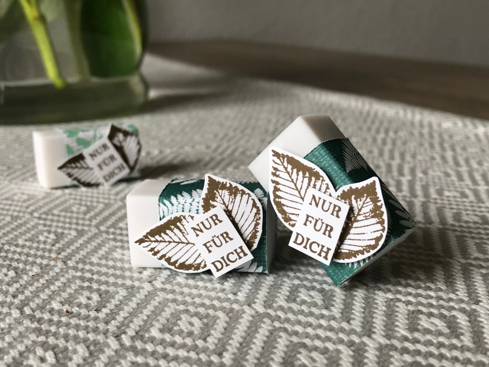 Trotzdem zeige ich euch im neuen Video meine Goodies vom letzten Bastelworkshop, diese schnellen und einfachen Radiergummi-Verpackungen mit unserem Designerpapier. Zur Designerpapier- Aktion schaut doch bitte in meinen letzten Eintrag!
