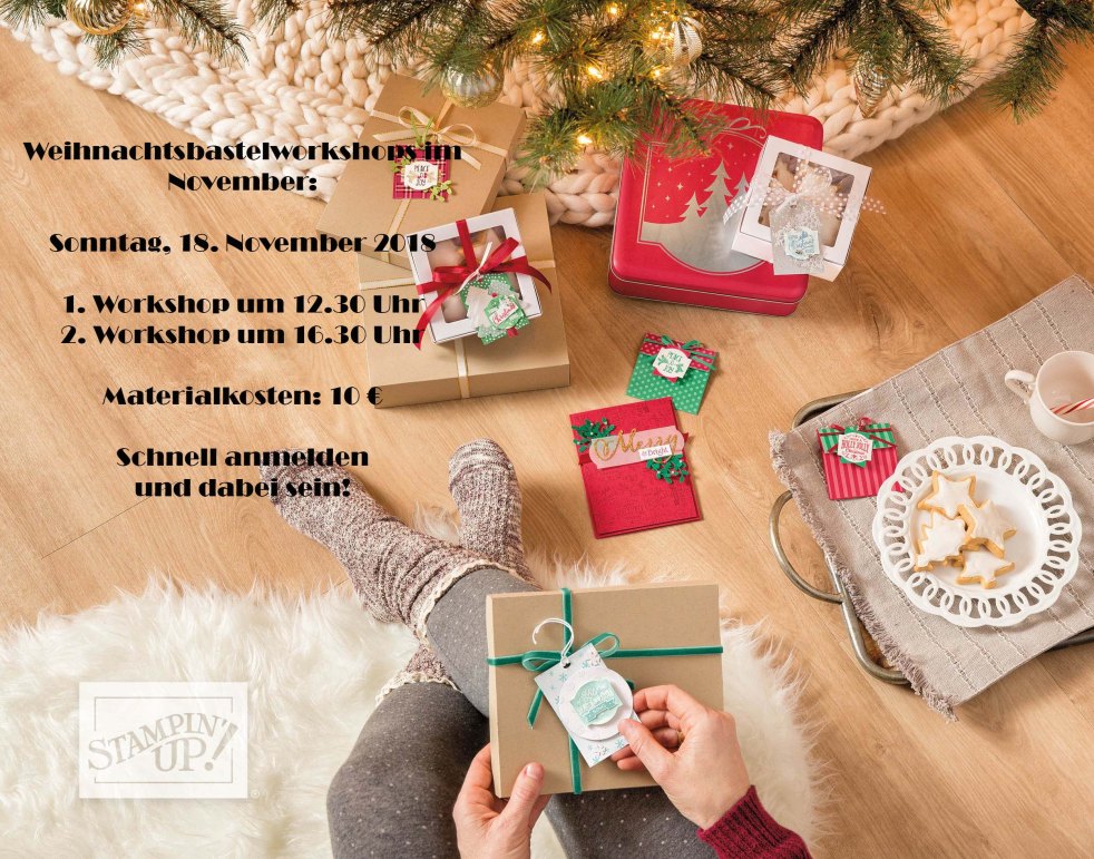 ich lade euch herzlich zu den nächsten beiden Bastelworkshops ein, die voraussichtlich die letzten im Jahr 2018 sein werden! Deswegen packen wir zusammen das Thema Weihnachten an und Basteln zusammen ein Set aus Weihnachtskarte und Geschenkanhänger, damit ihr schon gerüstet seid, für die schönste Zeit im Jahr!