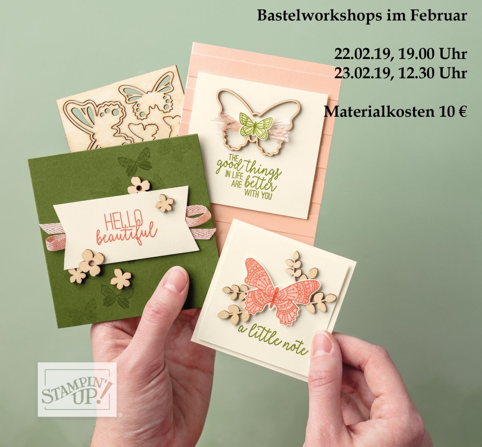 ich möchte euch meine beiden nächsten Bastelworkshops für Februar ankündigen! Wir basteln wie immer gemeinsam tolle Projekte, meine Planungen sind noch nicht komplett abgeschlossen, weil ich so viele Ideen habe, dass ich mich nicht entscheiden kann. Deswegen bleibt es vorerst noch ein Geheimnis, was wir genau machen 😉