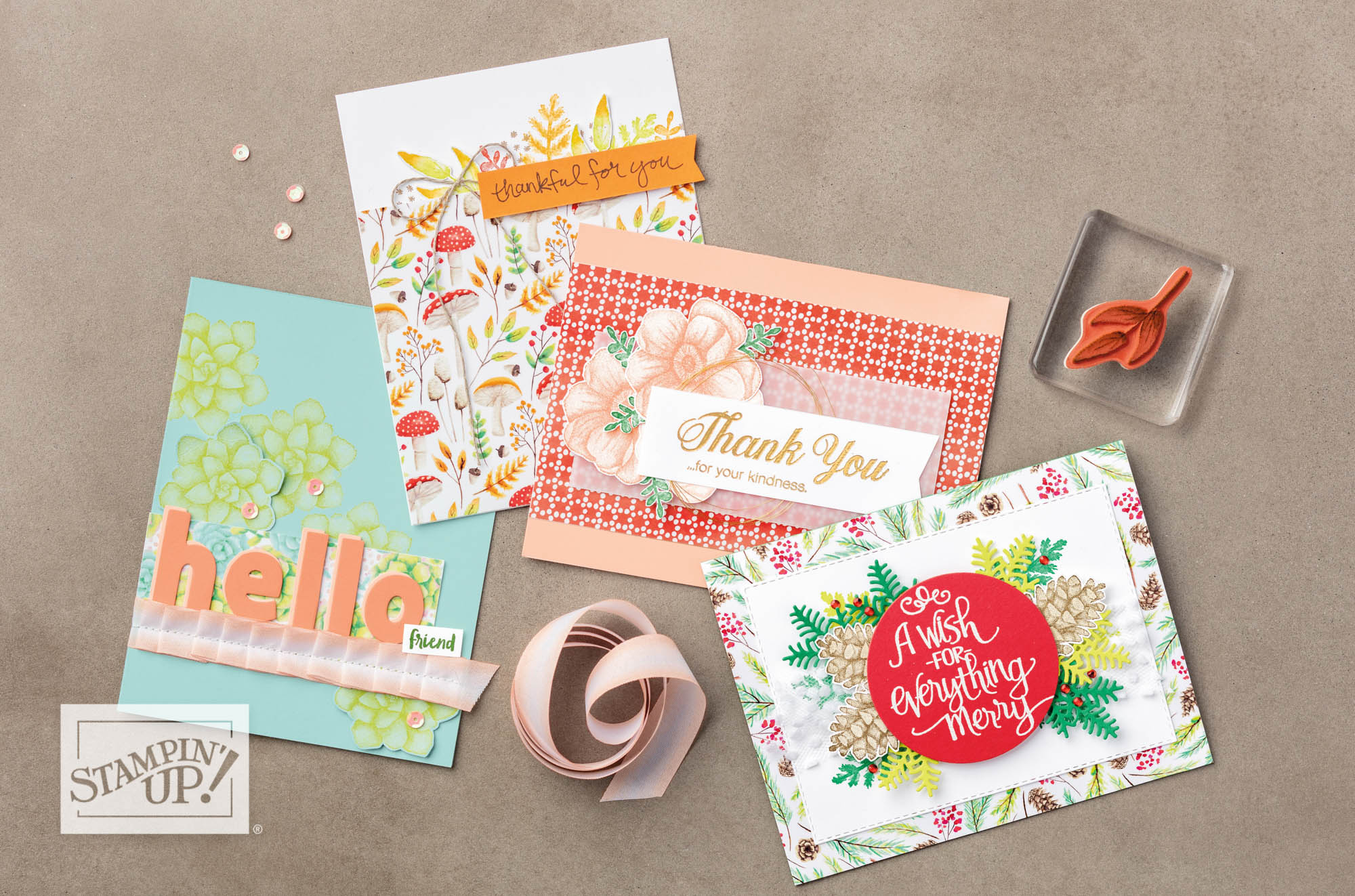 Ich zeige euch heute, die Produkte, die ich als Demonstratorin schon vorhin vorbestellen konnte, um sie euch in meinen bevorstehenden Workshops im Februar zu zeigen. Es wird einfach klasse! Vor allem, weil das für euch bedeutet, dass ihr direkt mit der nächsten Sammelbestellung die neuen Sale-A-Bration Produkte mitordern könnt.