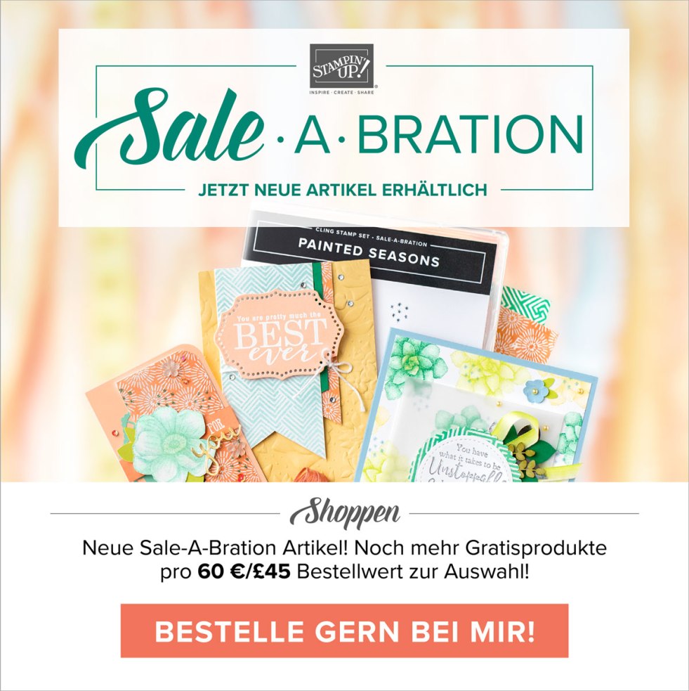es ist bald so weit! Am 15. Februar geht die Sale-A-Bration – die ungeschlagen BESTE Aktion von Stampin‘ Up! – in die zweite Runde. Das bedeutet für euch: Nigelnagelneue Gratisprodukte bei einem Bestellwert von 60€ bzw. 120€!
