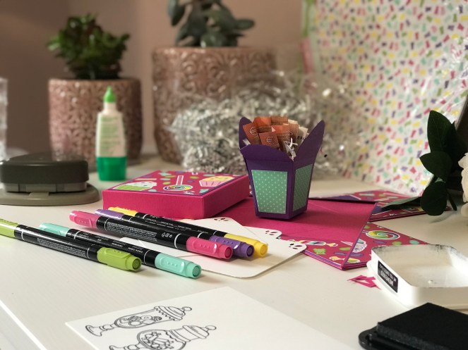 Als Geldgeschenk sind Explosionsboxen immer die allererste Wahl, allerdings nur, wenn ihr genug Zeit habt 😉 ich habe mittlerweile einige Explosionsboxen gebastelt und weiß aus dem Kopf, welches Maß und welche Produkte ich brauche und kenne die Anleitung, trotzdem brauche ich für ein solches Werk meine 2 Stunden, das als Orientierung, wie viel Zeit dabei benötigt wird, bevor ihr das Projekt startet 😊