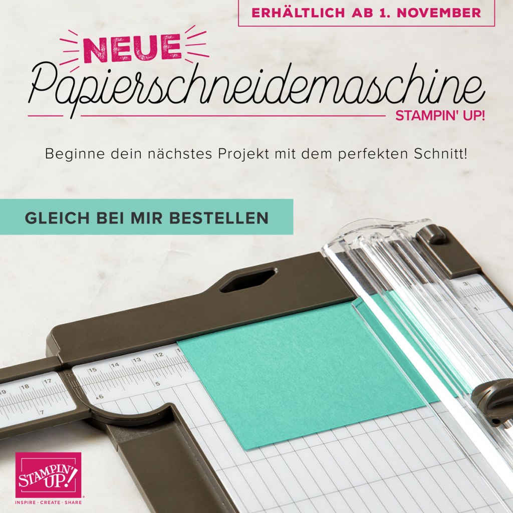 Endlich ist sie da, die neue Papierschneidemaschine von Stampin‘ Up! ist ab dem 1. November 2019 offiziell für alle KundInnen erhältlich. Du bist noch unentschlossen? Dann schau doch einmal hier für einen ausführlichen Testbericht! Ich persönlich bin von dem Gerät absolut überzeugt und freue mich, es dir beim nächsten Workshop selbst zeigen zu können 🙂