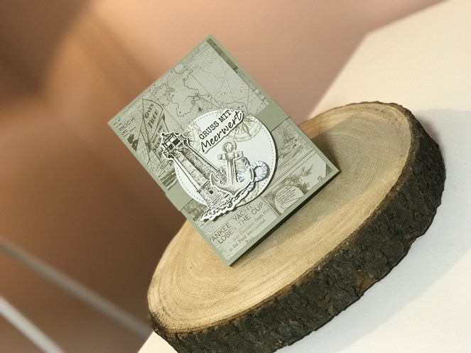 Den Spruch in Espresso „Gruß mit Meerwert“ habe ich aus einem anderen Stempelset, das sich superschön mit diesem hier kombinieren lässt: Es heißt ‚Mit Meerwert‘.