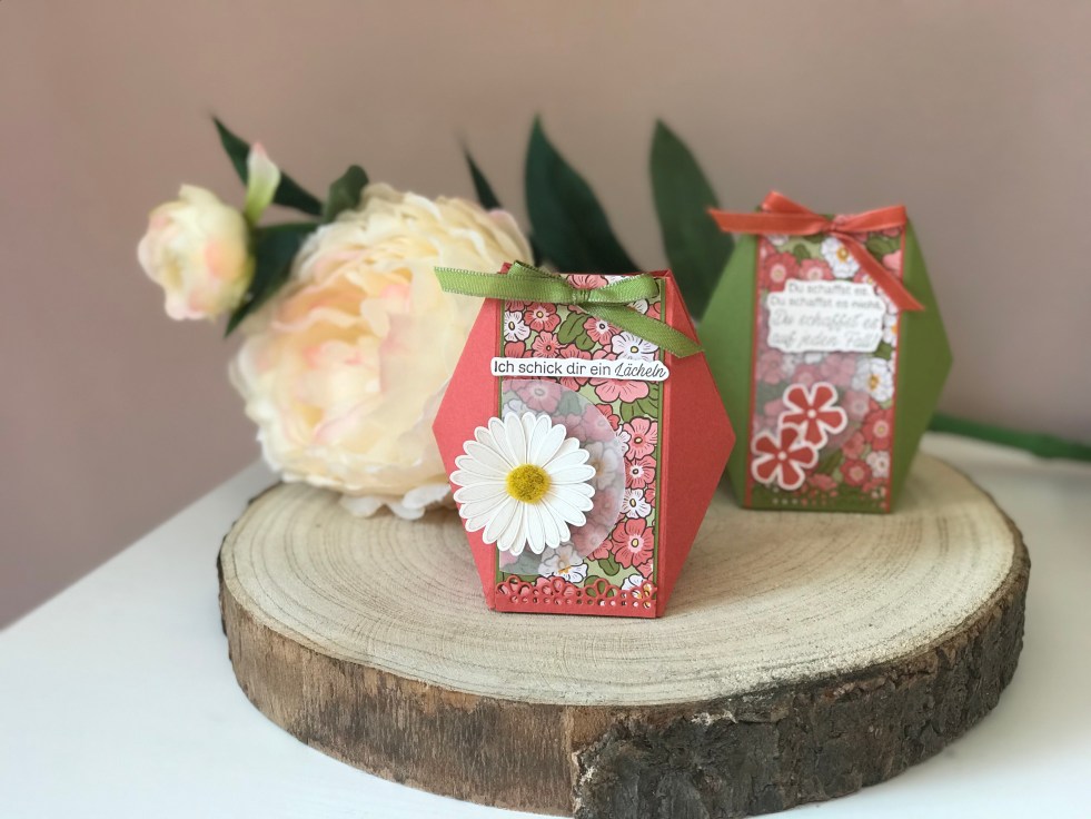 Wenn ihr die Box aus dem Titelbild genau anschauen wollt, dann klickt doch einfach auf die Aufzeichnung des Workshops und schaut euch die Produktreihe „Schöner Garten“ an. Diese Produktreihe ist das Prequel auf unseren fantastischen neuen Jahreshauptkatalog und ist bis zum 31.04.2020 noch im Vorverkauf erhältlich. Also nur noch diese Woche 😉 Danach müsst ihr euch bis zum Katalogstart im Juni noch etwas gedulden. Alle neugierigen klicken also entweder hier für weitere Projekte mit diesem tollen neuen Zeug oder hier für den Live Workshop mit den Facettenboxen in diesem blumigen Look:
