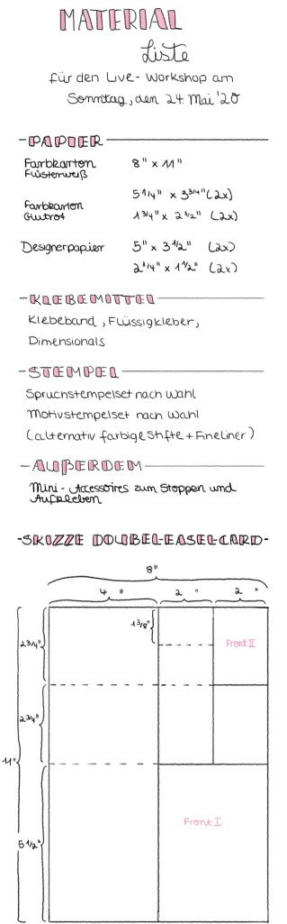 Wie immer gibt es für euch eine Materialliste sowie eine Skizze der Karte, damit ihr euch auf den LiveWorkshop vorbereiten könnt und eine Sicherheit zur Hand habt, falls ihr im Video nicht mitkommt oder den Faden verliert.
