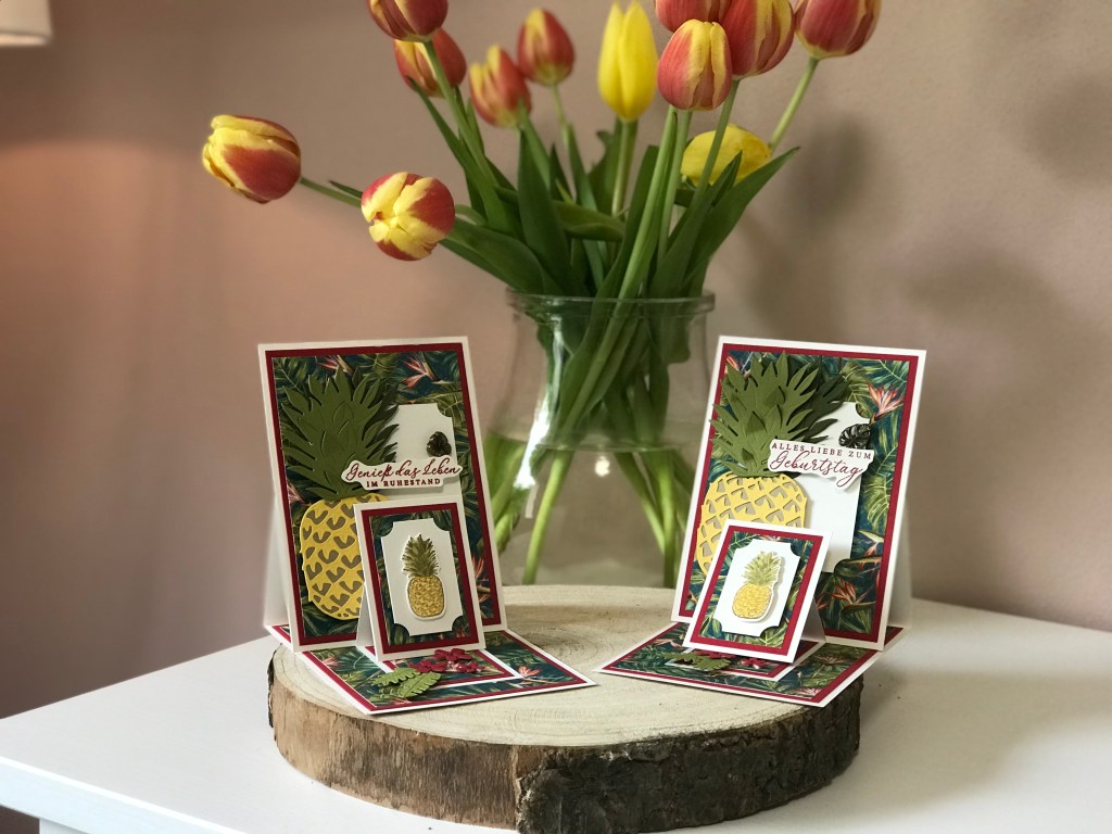 Wenn ihr das Projekt original so mitbasteln möchtet, dann habe ich euch eine Produktliste geschrieben, darauf kommt es bei dieser Art meiner Workshops aber überhaupt nicht an. Wichtig ist, dass ihr beim Basteln Spaß habt und ein Projekt dabei herauskommt, das euch gut gefällt. Ich wollte die Vorfreude auf unseren neuen Katalog ein wenig ausleben und habe mit der Produkreihe Schöner Garten gebastelt, die mich vor allem wegen des schönen Designerpapiers so sehr begeistert! Ich bin mir sicher, ihr werdet sie lieben 😉 Das Video aus der Vogelperspektive ist schon aufgenommen und kommt am Montag hinterher 🙂