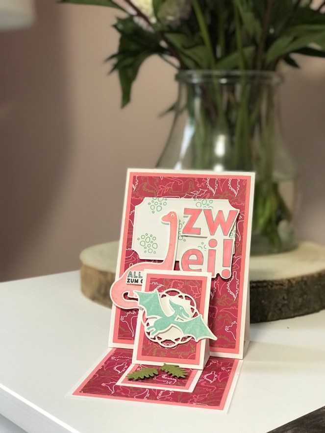 Wenn ihr euch unsicher seid, ob dieses Format etwas für euch ist, dann schaut unbedingt in den Mitschnitt hinein und findet es heraus. Dort seht ihr auch, wie die rosa Karte für unsere Nichte entsteht, die bald ihren zweiten Geburtstag feiert.