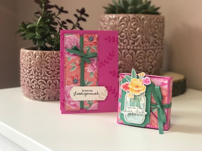 Im Video zeige ich euch Schritt für Schritt die Karte in Magentarot zusammen mit dem wunderschönen Designerpapier „Blumen für jede Jahreszeit„, die Verpackung dazu habe ich euch vor zwei Wochen im Online Bastelworkshop gezeigt. Wenn ihr also ein Geschenkset basteln wollt, dann seid ihr bei diesen beiden Anleitungen genau richtig!