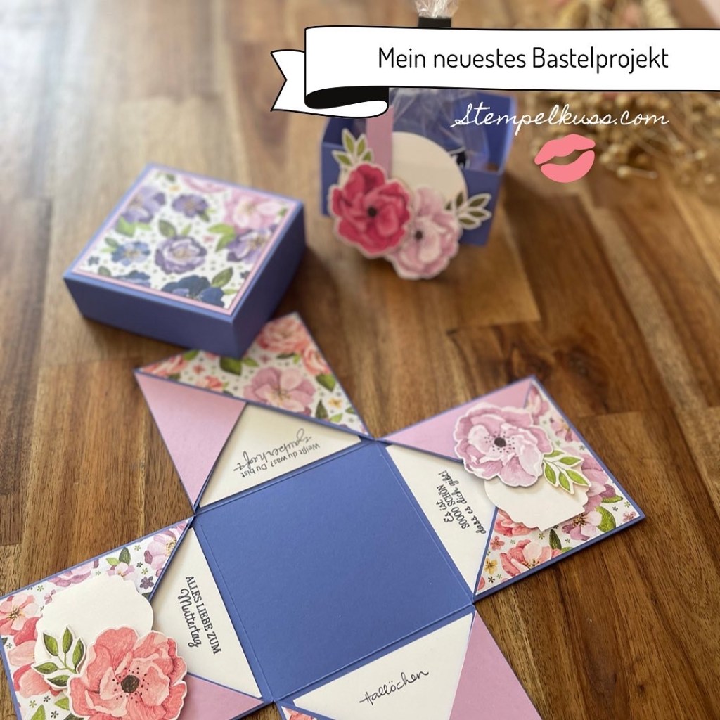 meine neuer Workshop dreht sich um schicke Explosionsboxen. Diese könnt ihr zu so ziemlich jedem Anlass verschenken, sie machen einen super Eindruck und wenn ihr einmal wisst, wie es geht, dann ist es sogar recht einfach gemacht. Alles, was ihr braucht ist – Zeit!