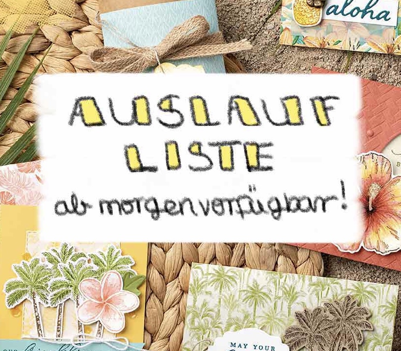 Liebe StempelfreundInnen und Stampin‘ Up! Interessierte, Jedes Jahr um diese Zeit nehmen wir Abschied von einigen unserer Lieblinge aus dem aktuellen Jahreshauptkatalog. Doch auch wenn es im ersten Moment immer etwas traurig erscheint, lachen wir am 3. Juni wieder darüber, wenn wir dann endlich den neuen Katalog in unseren Händen halten und die Schätze sehen,… Weiterlesen Auslaufliste morgen ab 21 Uhr – Ausverkauf der Stampin Up! Produkte des letzten Jahres