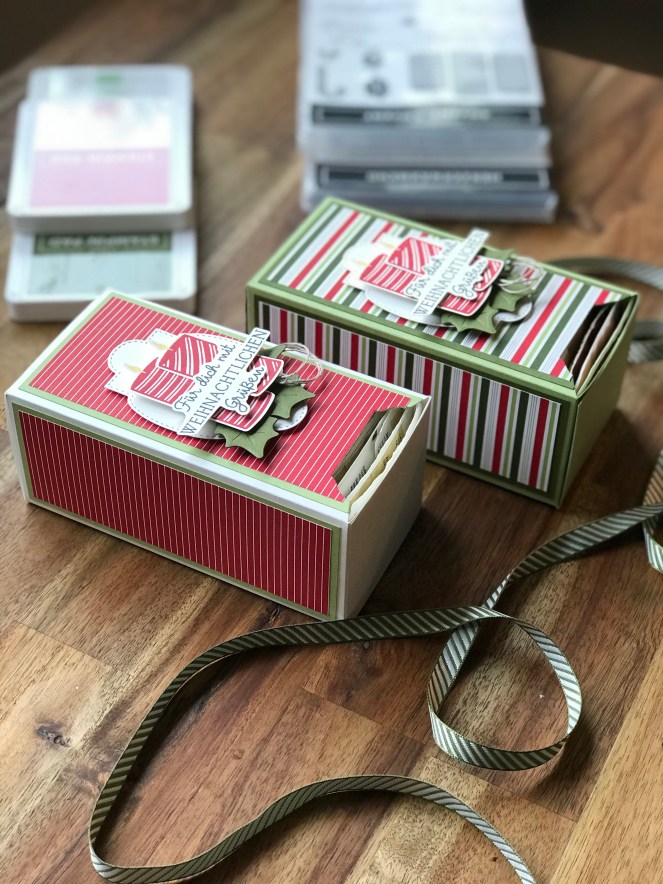 Merci, dass es dich gibt, sagt diese Schokoladenbox im Kartenformat. Mit Platz für 6 kleine Riegelchen, für kleine Anhängerchen mit netten Grüßen ist sie ein echter Allrounder, den du zu jedem Anlass verschenken und immer wieder nachbasteln kannst. Optional kannst du Stempelsets und Anhängerstanze dazubuchen – ein MUSS für jeden Bastler, der Anhänger und Verpackungen liebt.