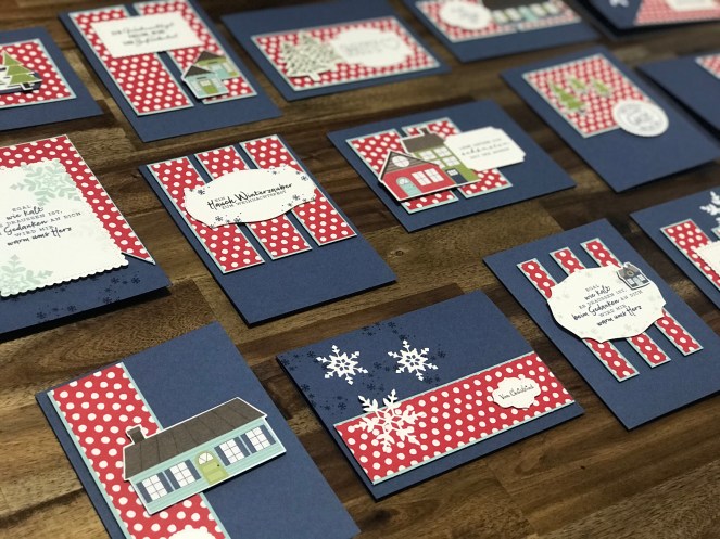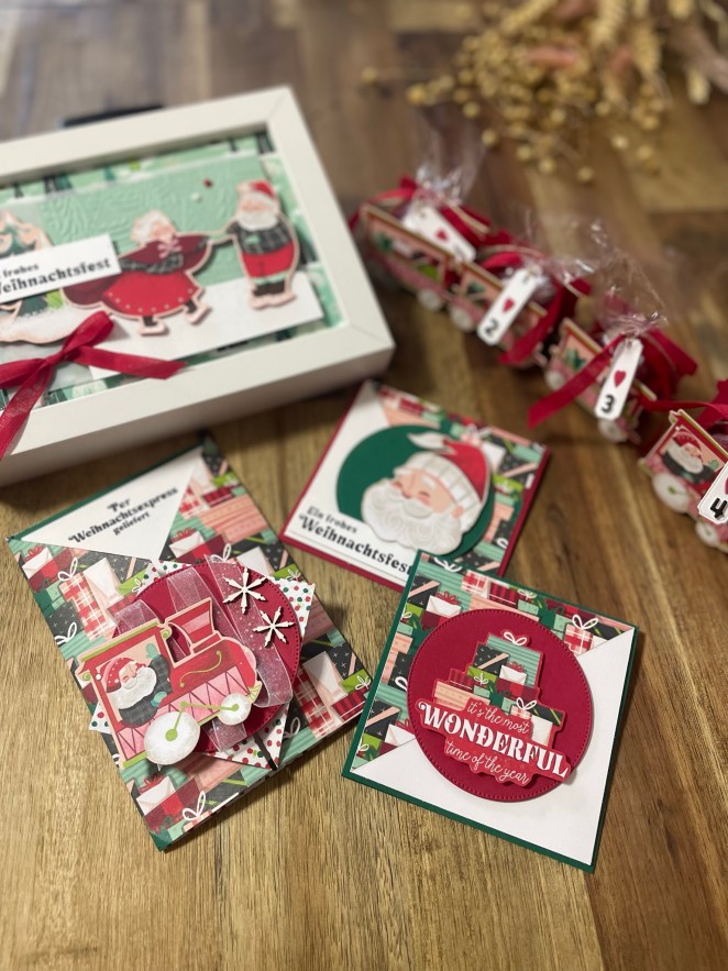 Der Workshop enthält das Material für deine kompletten Weihnachtsbasteleien, Designerpapier, Farbkarton und Co: (Preis für das Paket: 55€)